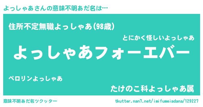 | ファンタジー風あだ名 | 『エターナルヨッシャアー』『ヨッフェル』 |