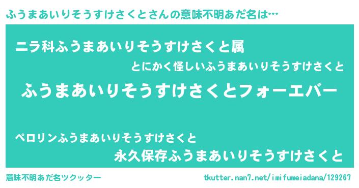 | ファンタジー風あだ名 | 『エターナルフウマアイリソウスケサクトー』 |