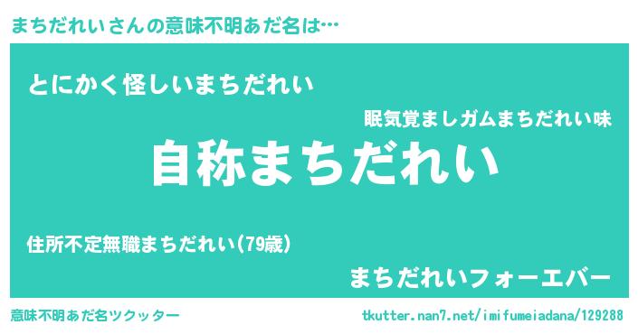 | 男性向けラノベタイトル風あだ名 | 『Re:まちだれいから始める異世界生活』 |