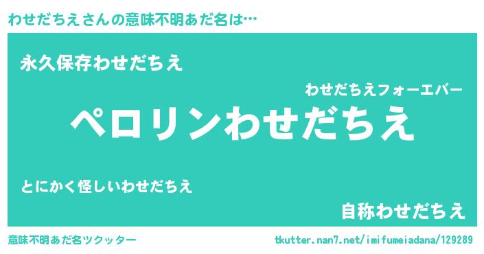 | 男性向けラノベタイトル風あだ名 | 『わせだちえに滅ぼされるだけの簡単なお仕事です』 |