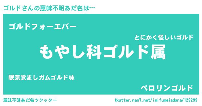 | 男性向けラノベタイトル風あだ名 | 『転生したらゴルドだった件』 |