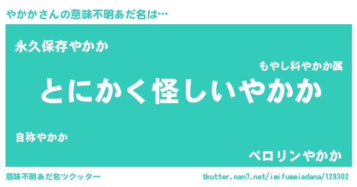 | ヘコむあだ名 | 『やかっ子』『やかか(笑)』 |