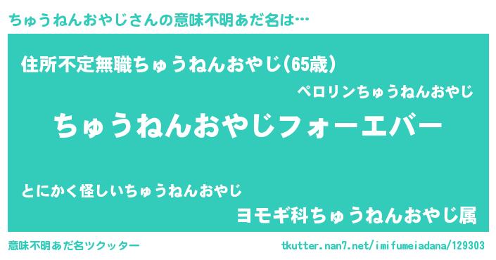 | ファンタジー風あだ名 | 『エターナルチュウネンオヤジー』 |