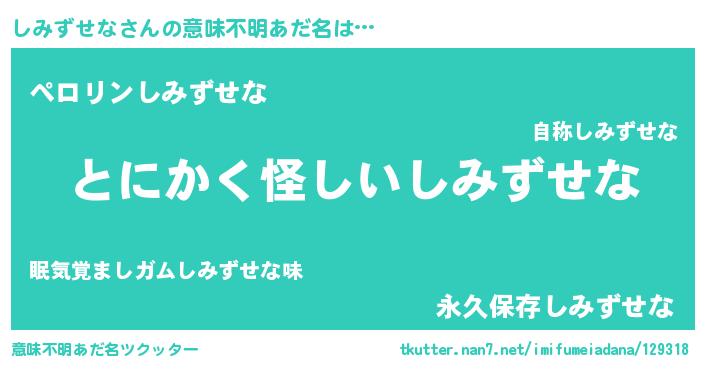 | 男性向けラノベタイトル風あだ名 | 『しみずせなの嫁は女の子じゃないと思った?』 |