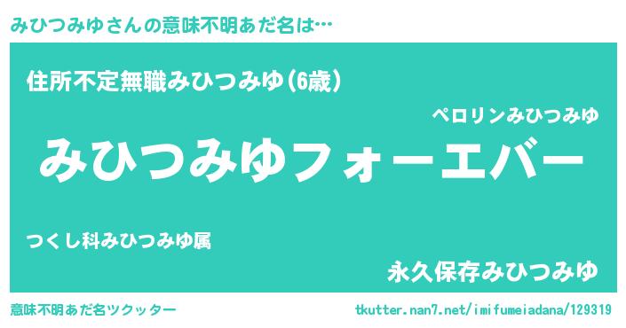 | ヒーロー風カッコイイあだ名 | 『ウルトラみひつみゆマン』 |