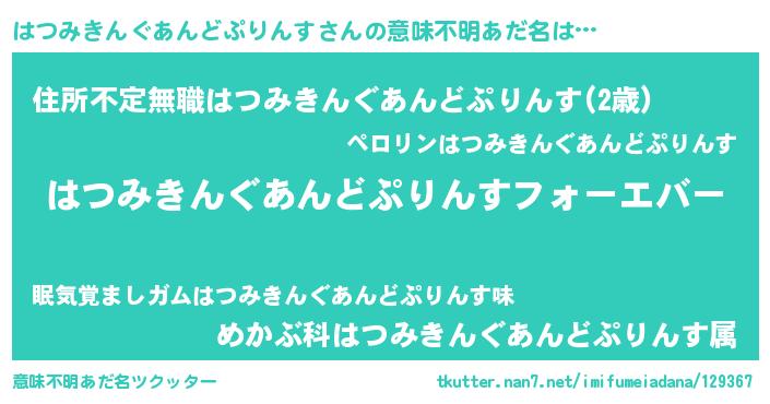 | ファンタジー風あだ名 | 『エターナルハツミキングアンドプリンスー』 |