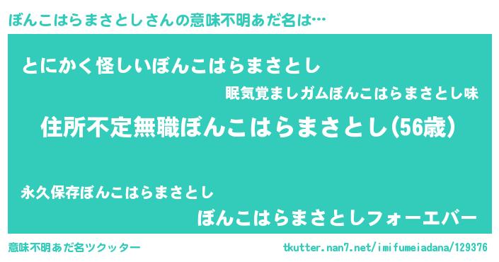 | 女子向けラノベタイトル風あだ名 | 『悪役ぼんこはらまさとしに転生したようですが、知った事ではありません』 |