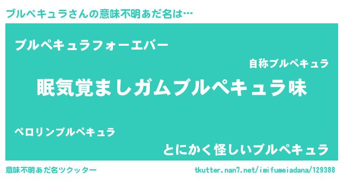| 女子向けラノベタイトル風あだ名 | 『ブルぺキュラ恋絵巻』 |
