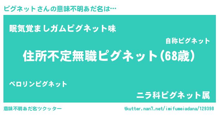 | 料理風あだ名 | 『ピグネットのカルパッチョ風』 |