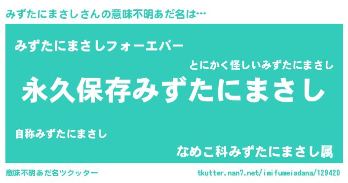 | 胡散臭い通販商品みたいなあだ名 | 『来世でも幸せになれる水素水…その名も「みずたにまさし」』 |