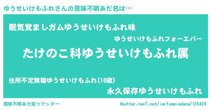 | 欧米人風あだ名 | 『トリンドルゆうせいけもふれ』 |