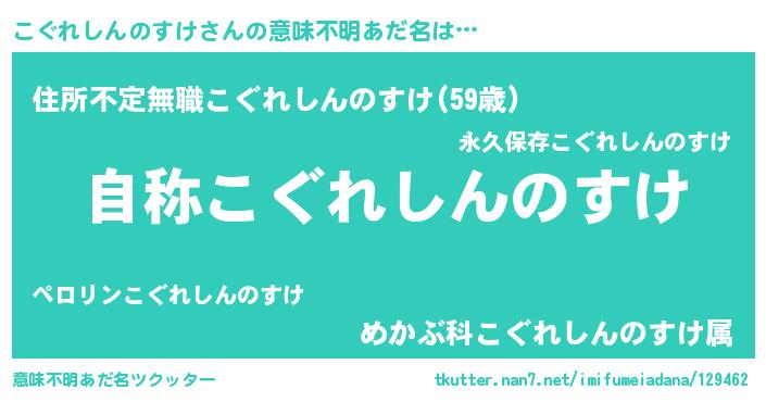 | 男性向けラノベタイトル風あだ名 | 『Re:こぐれしんのすけから始める異世界生活』 |