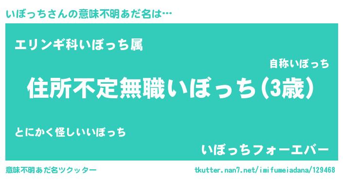 | ヒーロー風カッコイイあだ名 | 『仮面イボダー』『ウルトラいぼっちマン』 |