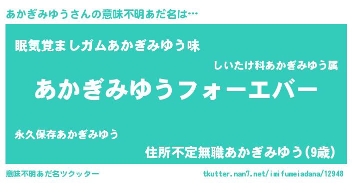| ファンタジー風あだ名 | 『エターナルアカギミユウー』 |