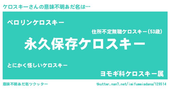 | ヒーロー風カッコイイあだ名 | 『ネオケロスキー』『スーパーケロスキー』 |