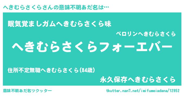 | ファンタジー風あだ名 | 『エターナルヘキムラサクラー』 |