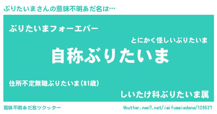 | 男性向けラノベタイトル風あだ名 | 『ぶりたいまに滅ぼされるだけの簡単なお仕事です』 |