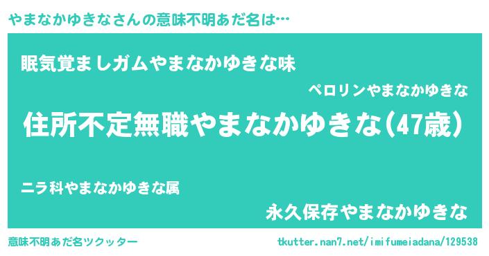 | ヘコむあだ名 | 『やまなかゆきな(笑)』『やまっふぃ~』 |