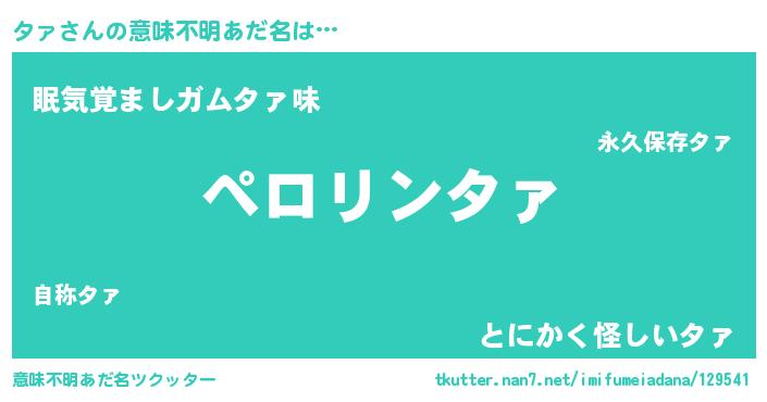 | 男性向けラノベタイトル風あだ名 | 『タァアートオンライン』『緋弾のタァ』 |