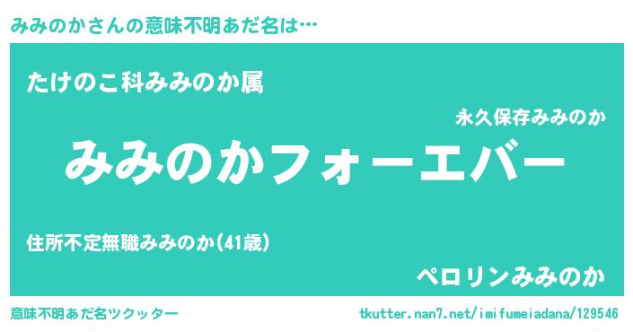 | ヒーロー風カッコイイあだ名 | 『ウルトラみみのかマン』『ネオミミノカ』 |