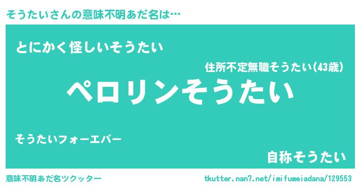 | ヒーロー風カッコイイあだ名 | 『スーパーソウタイ』『銀牙騎士ソウ』 |