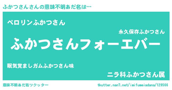 | ファンタジー風あだ名 | 『エターナルフカツサンー』『フカフェル』 |