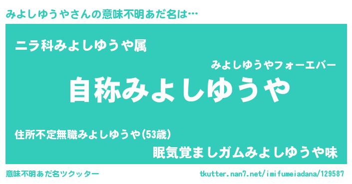 | 肩書あだ名 | 『みよしゆうや閣下』『みよしゆうや中佐』 |