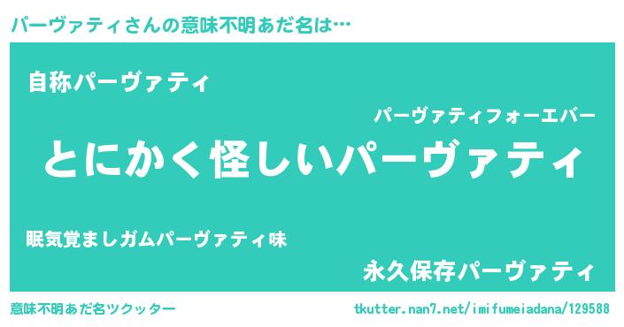 | ヘコむあだ名 | 『パーお』『パーヴァティ(遠い目)』 |