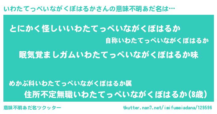 | 料理風あだ名 | 『いわたてっぺいながくぼはるかのトマト煮』 |
