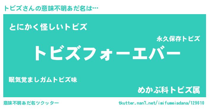 | 欧米人風あだ名 | 『トビズクリステル』『ウサイントビズ』 |