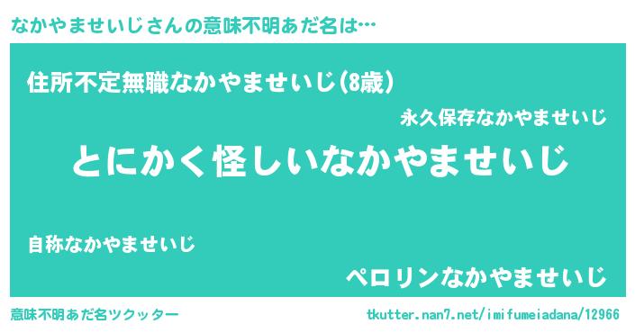 | 男性向けラノベタイトル風あだ名 | 『なかやませいじの嫁は女の子じゃないと思った?』 |