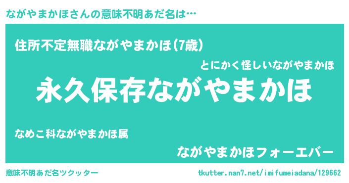 | 女子向けラノベタイトル風あだ名 | 『異世界で失敗しない100のながやまかほ』 |