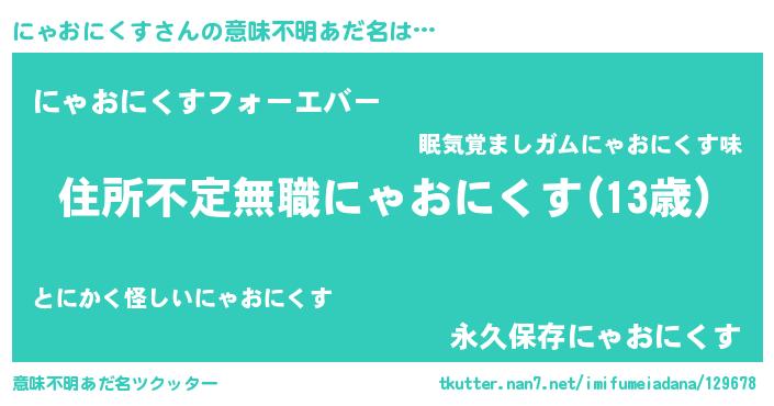 | 男性向けラノベタイトル風あだ名 | 『にゃおにくすに滅ぼされるだけの簡単なお仕事です』 |