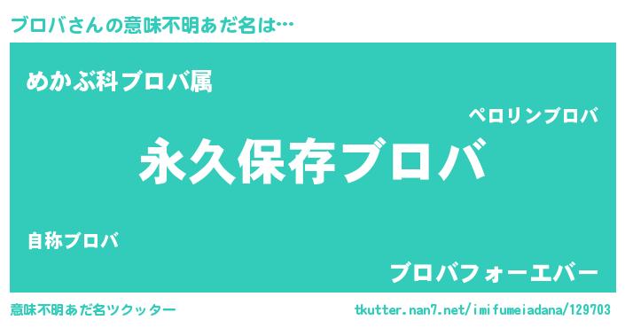 | 男性向けラノベタイトル風あだ名 | 『ブロバという概念が存在しない退屈な世界 』 |