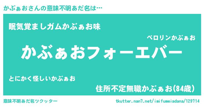 | 女子向けラノベタイトル風あだ名 | 『かぶぁおの婚約者』『かぶぁお恋絵巻』 |