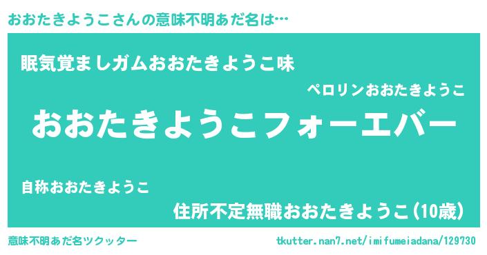 | 欧米人風あだ名 | 『おおたきようこクリステル』 |