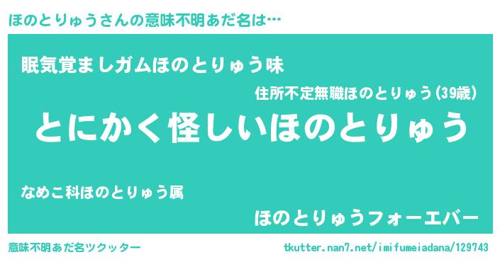 | 女子向けラノベタイトル風あだ名 | 『ほのとりゅうは平凡を望む』 |