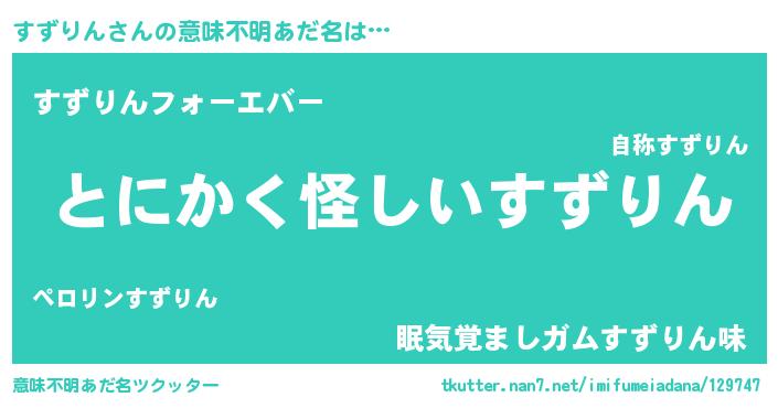 | 胡散臭い通販商品みたいなあだ名 | 『信頼と実績のサプリメント…その名も「すずりん」』 |