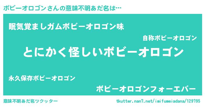 | 男性向けラノベタイトル風あだ名 | 『ボビーオロゴンの嫁は女の子じゃないと思った?』 |