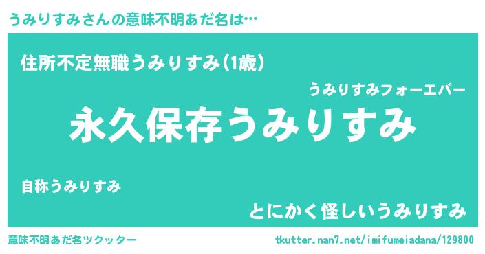 | 男性向けラノベタイトル風あだ名 | 『うみりすみに滅ぼされるだけの簡単なお仕事です』 |