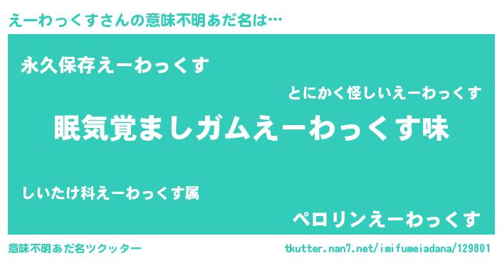 | ヒーロー風カッコイイあだ名 | 『正義の使者えーわっくす』 |