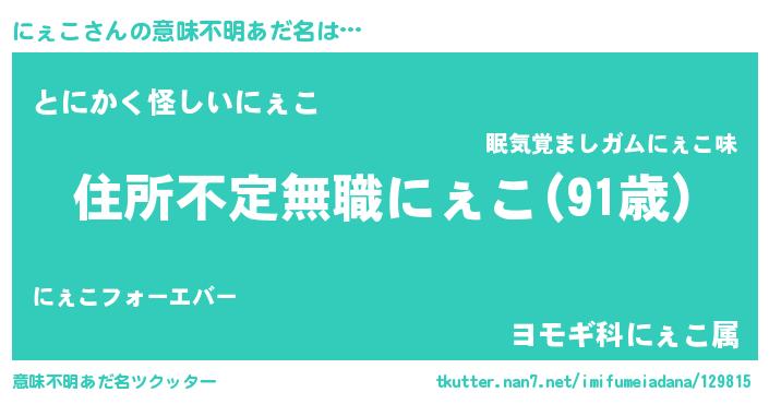 | 欧米人風あだ名 | 『にぇこ・ステッグマイヤー』 |