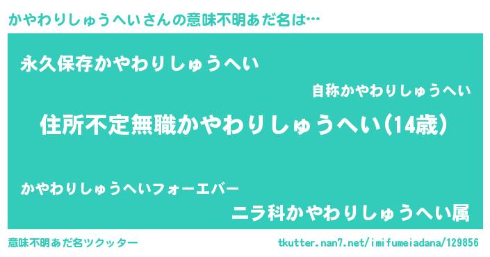 | ヘコむあだ名 | 『かやわりしゅうへい(笑)』『つくし』 |