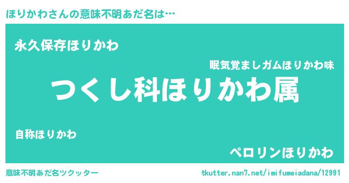 | 男性向けラノベタイトル風あだ名 | 『ほりかわ~年齢イコール彼女いない歴の魔法使い~』 |