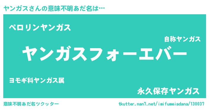 | 欧米人風あだ名 | 『ヤンガスクリステル』 |