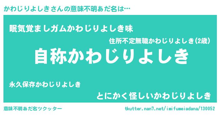 | 欧米人風あだ名 | 『ケンブリッジかわじりよしき』 |