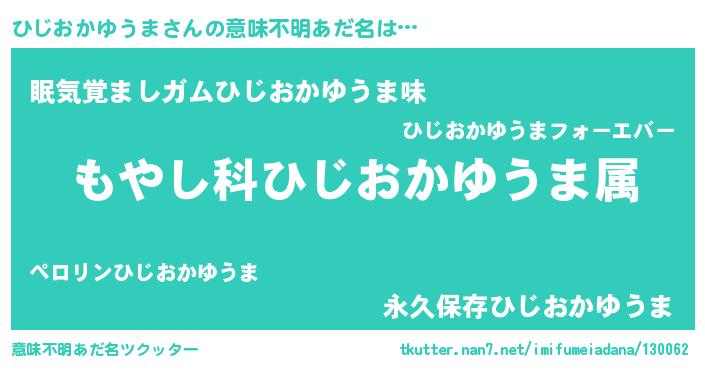 | 欧米人風あだ名 | 『ひじおかゆうま・ステッグマイヤー』 |
