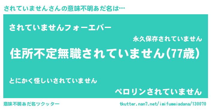 | 胡散臭い通販商品みたいなあだ名 | 『あなたにだけ特別に提供する世界で10本だけ現存している希少なブランデー…その名も「されていません」』 |