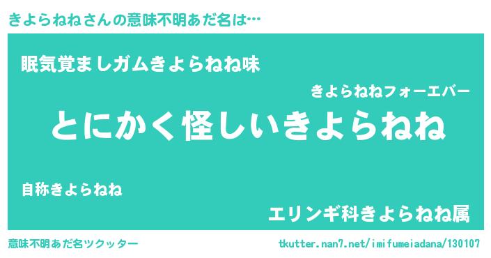 | 胡散臭い通販商品みたいなあだ名 | 『信頼と実績のネックレス…その名も「きよらねね」』 |