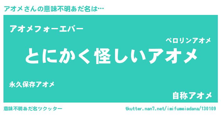 | ポケモン風あだ名 | 『ヒアオメ』『アオメダネ』 |